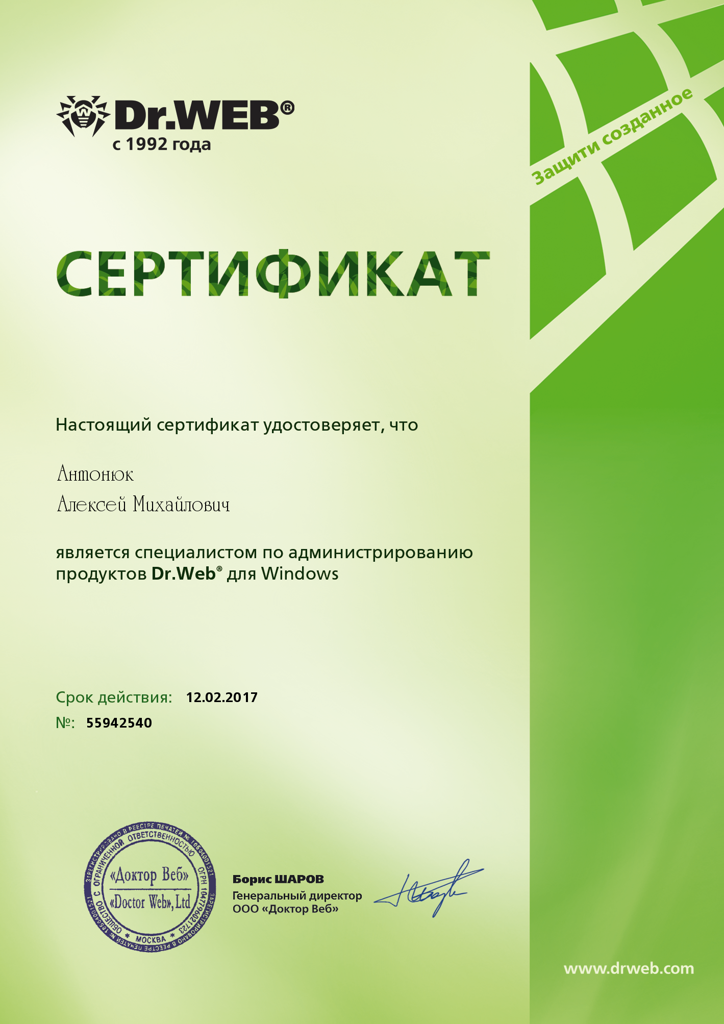 DWCERT-030-11 - Услуга «Антивирус Dr.Web» для бизнеса. Сертифицированный пользователь услуги «Антивирус Dr.Web» для бизнеса.
